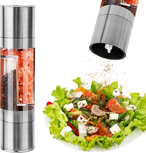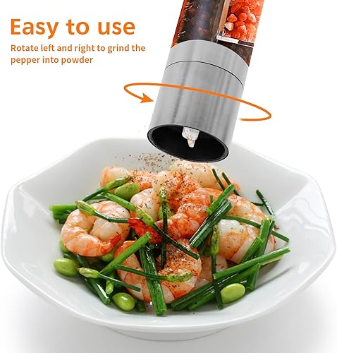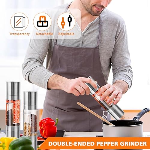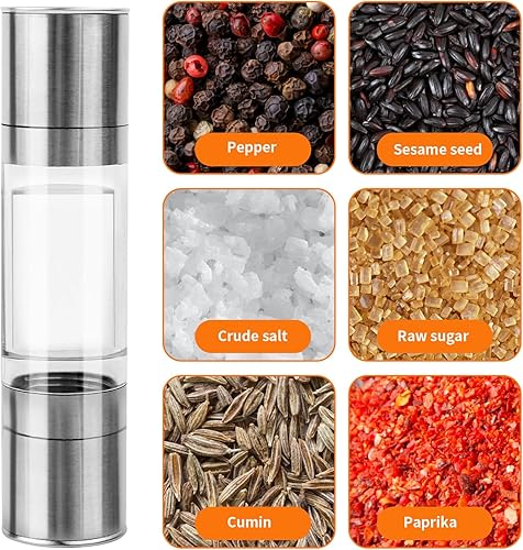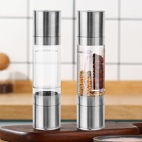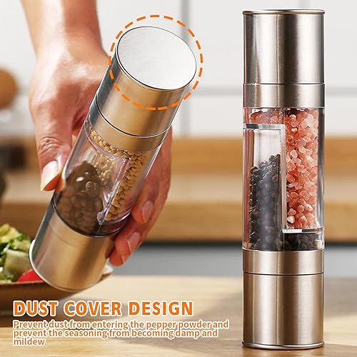 Moulin Poivre Manuel de Table,Broyage Double de Salieres et Poivrieres Inoxydable Moulins à épices Réglable Poivrier Convient Pour le Gros sel de mer, le Poivre