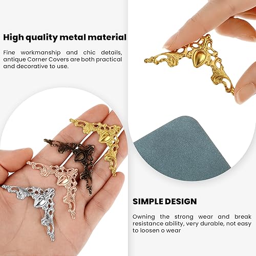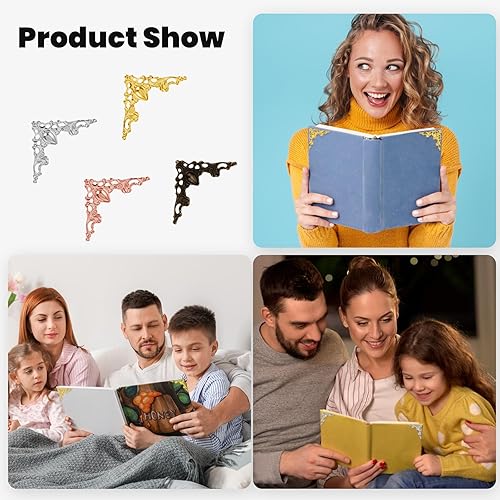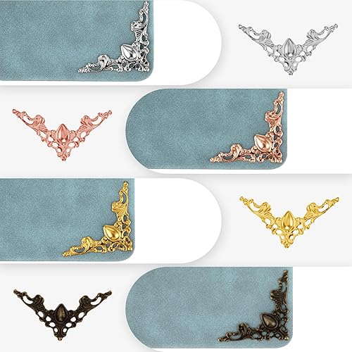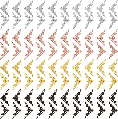 Bewudy Lot de 80 protections d'angle en métal pour livres, 4 couleurs, autocollants décoratifs pour bureau, boîte à bijoux, cadeaux, nécessite une utilisation avec de la colle, 571784_1-SALZZ-D