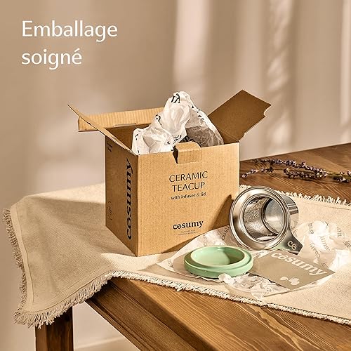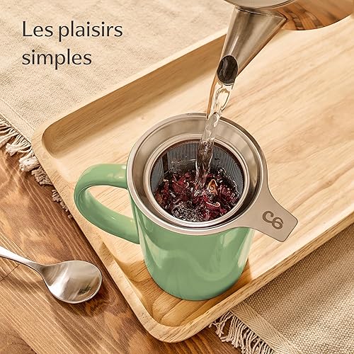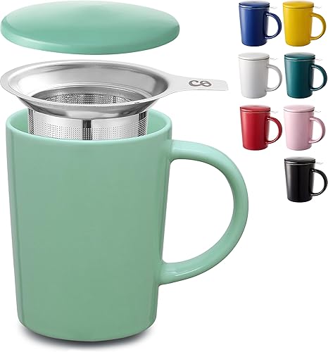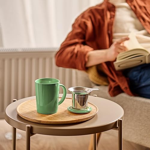 Tasse à Thé avec Infuseur et Couvercle 400ml Grand - Céramique - Reste Chaud Longtemps - Turquoise