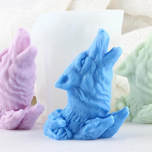 XIAOSHUI Moule à bougie en forme de tête de loup - En silicone - Forme animale - En résine époxy - Pour la fabrication de bougies, la décoration de la maison - Aromathérapie - Plâtre - Bougies en