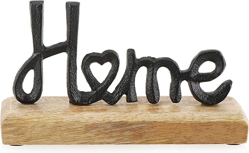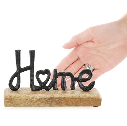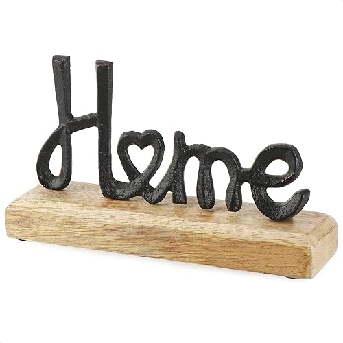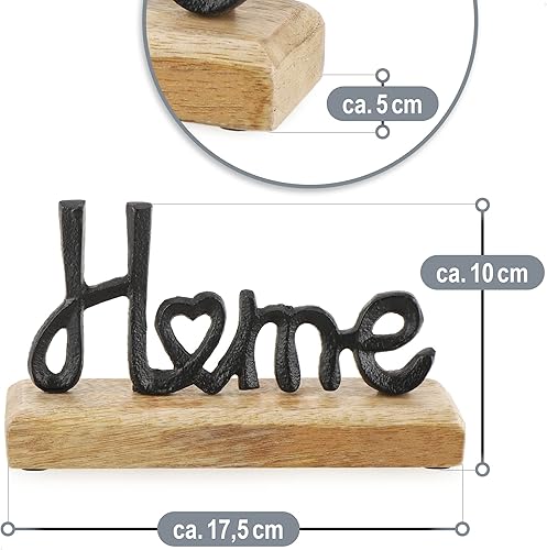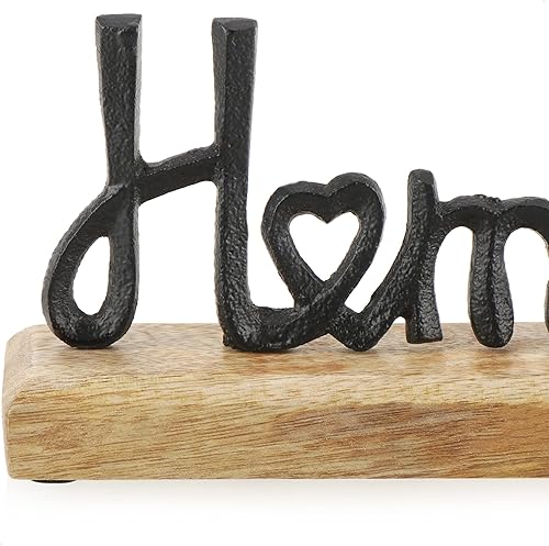 com-four® Présentoir décoratif Home - Lettrage en métal sur Socle en Bois de manguier - Lettrage décoratif à Poser (Noir Marron)