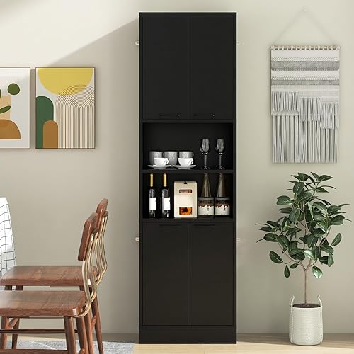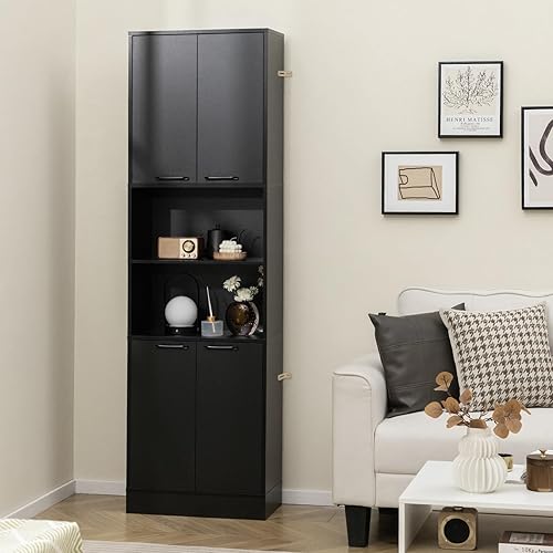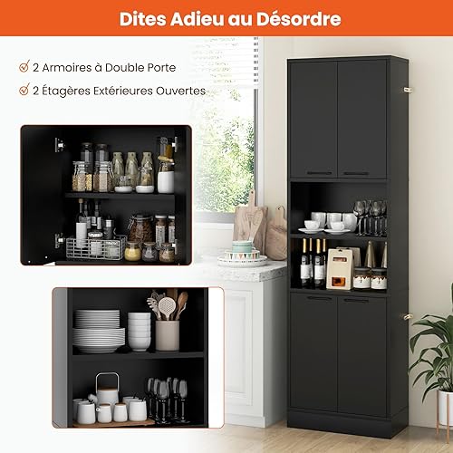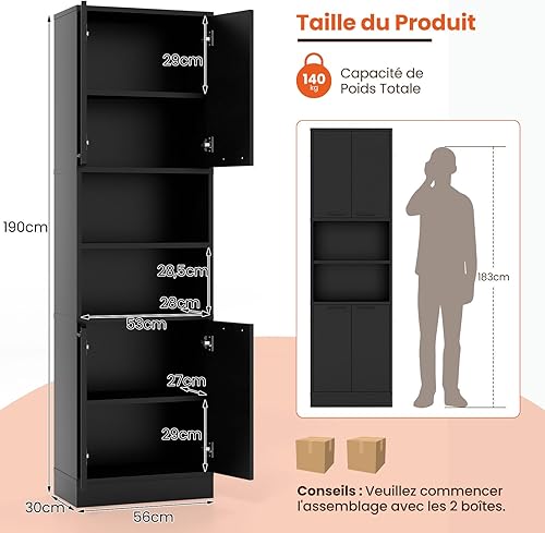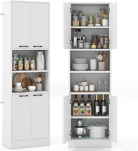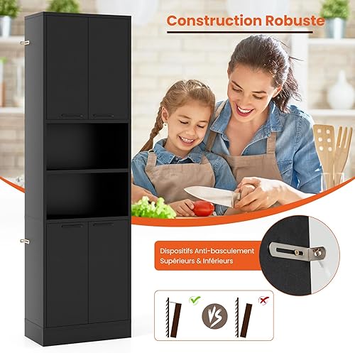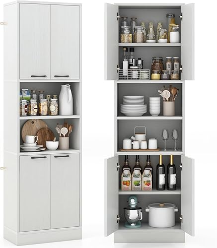 COSTWAY Buffet Cuisine Haut 190 cm, Meuble Rangement, 2 Placard, 2 Doubles Portes, 6 Etagères, Kits Anti-Basculement, Vaisselier, Armoire pour Salle de Bain (Blanc)