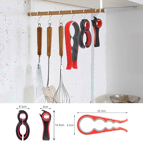 Gtwinsone 3 Pièces 6 en 1 Multifonctionnel Ouvre Bocal Manuel Facile Ouvre Canette Can Opener Caoutchouc Bocaux Pince à Bocaux Convient Mains Faibles,Personnes Âgées et Patients Souffrant D'arthrite