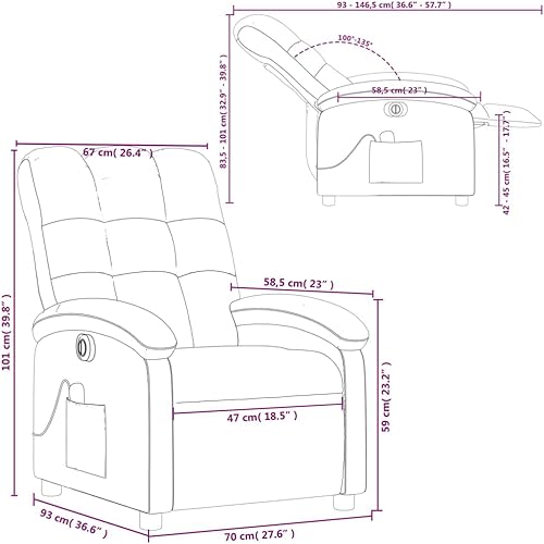 vidaXL Fauteuil Inclinable de Massage Électrique, Chaise de Relaxation avec Dossier et Repose-Pied Réglables, Siège de Salon, Moderne, Gris Foncé Tissu