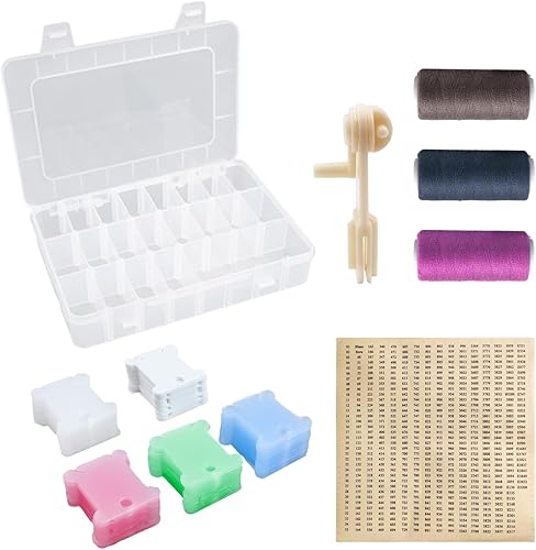 ATBUSS Lot de 156 Organisateurs de Fils à Broder - Boîte de Rangement 24 Grilles, Étiquette Numérotée, 150 Bobines, 3 Fils à Coudre - Accessoires de Point de Croix