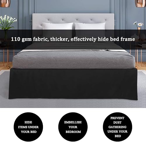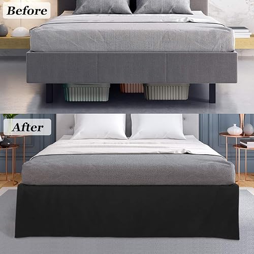 PiccoCasa Cache-sommier plissé taille complète, cadre de lit et housse de sommier tapissier – Cache-sommier sur mesure de 40,6 cm, infroissable, résistant à la décoloration, facile à installer, noir