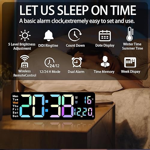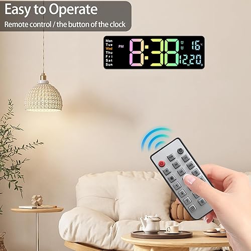 Focenat Horloge Murale numérique LED,Grande Horloge Numérique avec Télécommande,Horloge Murale Digitale à Luminosité Réglable,Réveil Mural LED avec Grand écran,pour Chambre à Coucher,Salon,Bureau