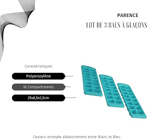 PARENCE.- Lot de 3 Bacs à Glaçons en Polypropylène - 16 Compartiments par Bac (48 au total) / Empilables, 3 Pièces, 25x8,5x2,5cm - Couleurs Aléatoires