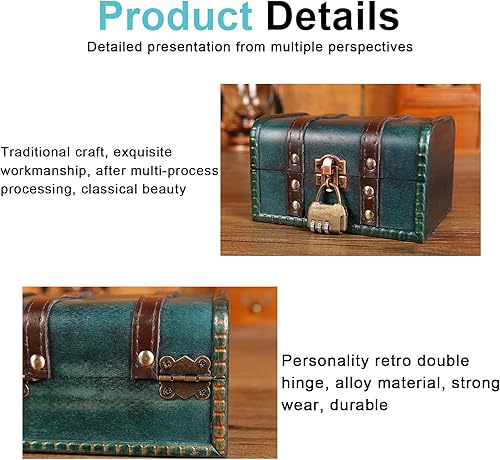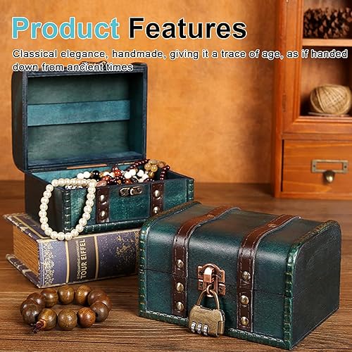 Nizirioo Coffre au trésor vintage en bois avec serrure à combinaison : coffre au trésor vintage, petit coffre au trésor pirate, boîte à bijoux avec couvercle, coffre au trésor, pour anniversaire