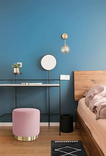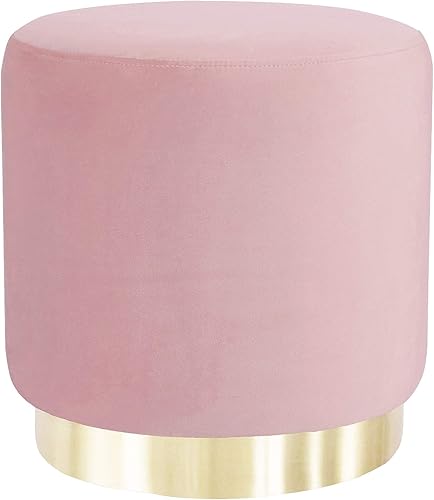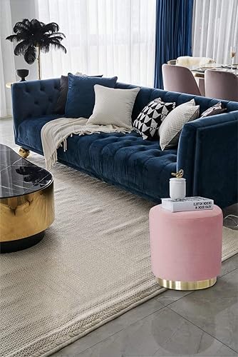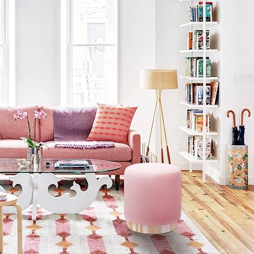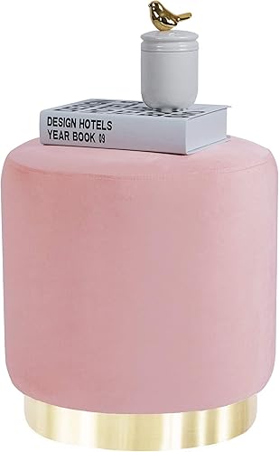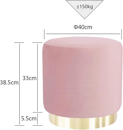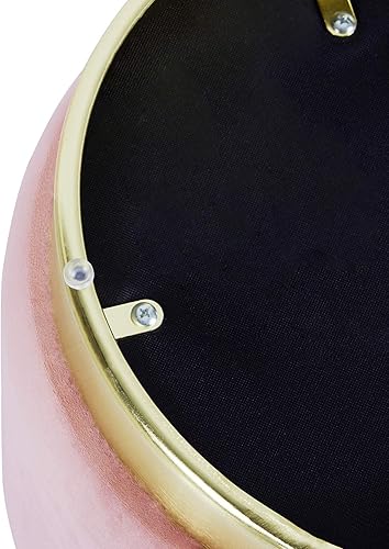 Suhu Pouf Tabouret Velours Coiffeuse Repose Pied Rond de Salon Design Chaise Moderne Siège Vintage Deco Bas en Métal Gold Rose