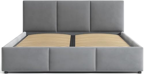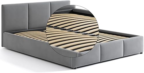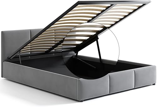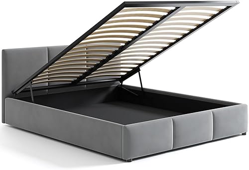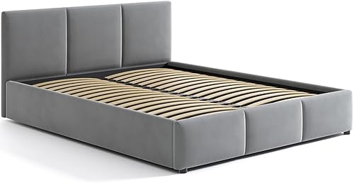 Jana Lit capitonné 160 x 200 cm avec tiroir de lit et tête de lit NELA gris