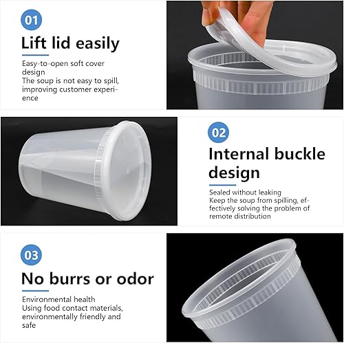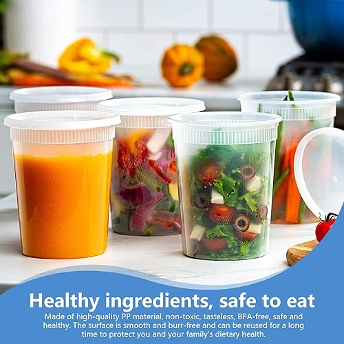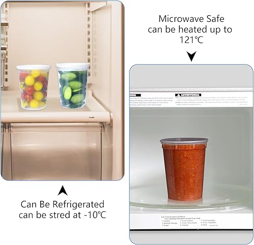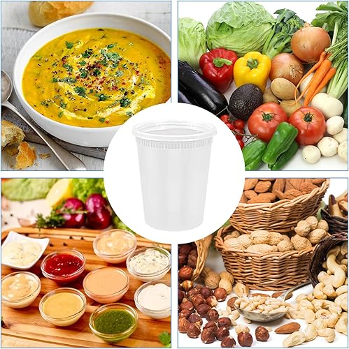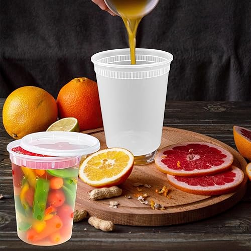 Kleemeiero 24PCS Récipients en Plastique avec Couvercle 960ML Contenants de Stockage de Soupe en Plastique avec Couvercles Récipients à Soupe avec Couvercles pour Conservation des Aliments Étanches