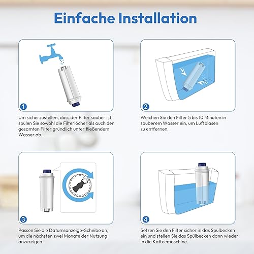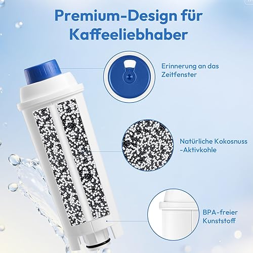 Finsna De'Longhi DLSC002 Lot de 6 filtres à eau de rechange pour machines à café et expresso Magnifica S, Dinamica, Eletta Explorer, ECAM, ETAM, EPAM