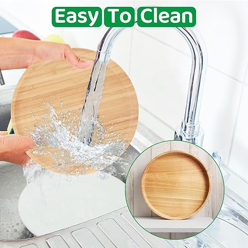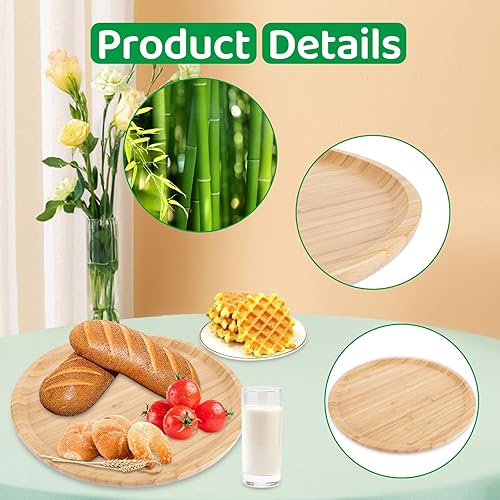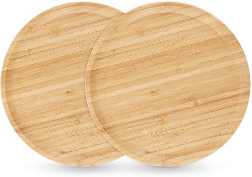 VIDETOL 2 Pièces Plateau de Service en Bambou, 30 x 30 x 2 cm Plateau Rond, Plateau Bois pour Fruits, Repas, Pots, Plantes