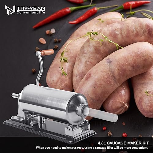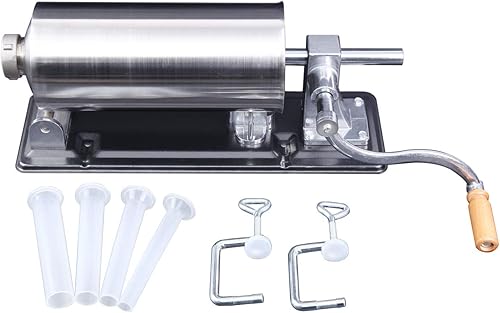 TRY-YEAN 4,8L Poussoir à Saucisses Manuel, Machine à Saucisses en Acier Inoxydable Alimentaire Ensacheuse Saucisse, 4 tubes de remplissage 11mm 16mm 20mm 28mm