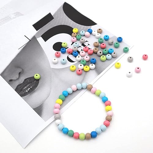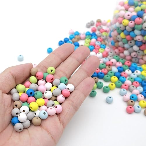 KtbeYTi 1000 Pcs 8 mm Perles en Bois Multicolores, Perles de Bois Colorées pour Loisirs Créatifs et Fabrication de Bijoux Cadeau, Couleur nacrée