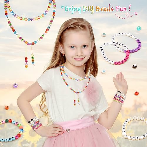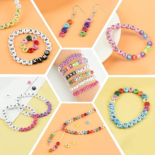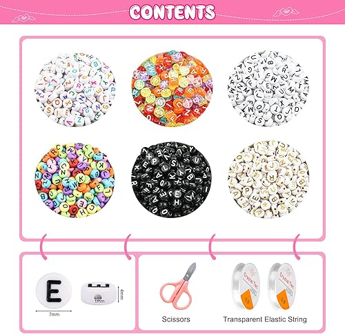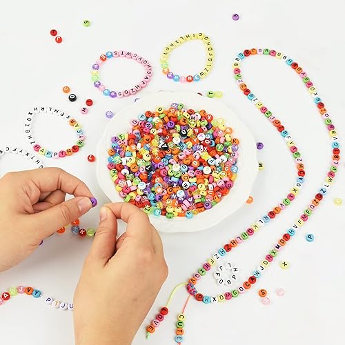 WuikerDuo 1800 Pièces en 6 Couleurs Lettres et Perles, Perles Acryliques pour Bracelet pour bijoux bracelets colliers porte-clés et enfants kit de fabrication, Taille unique