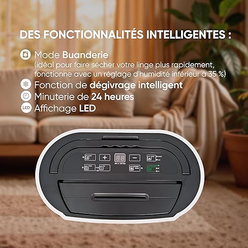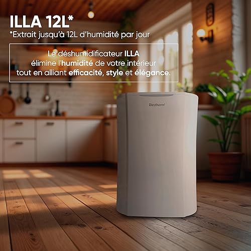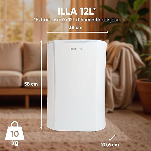 BESTHERM - Déshumidificateur d'air BESTHERM - Illa 12L/jour, réservoir amovible, filtre à charbon actif, ioniseur intégré