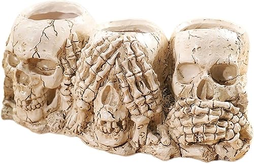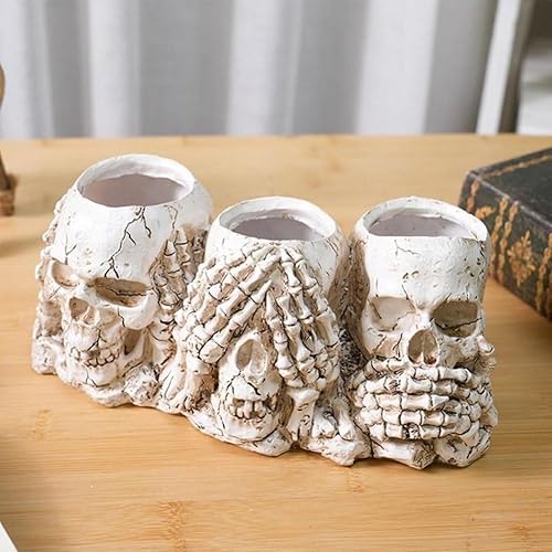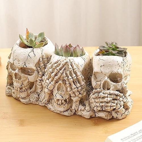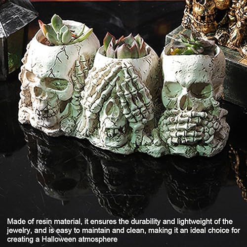 HiyyFloy Pot De Fleur en Forme De Tête De Crâne, Jardinière en Résine, Squelette Gothique, Bol De Plantes, Décorations De Bol De Bonbons d'halloween