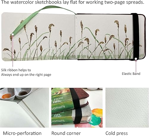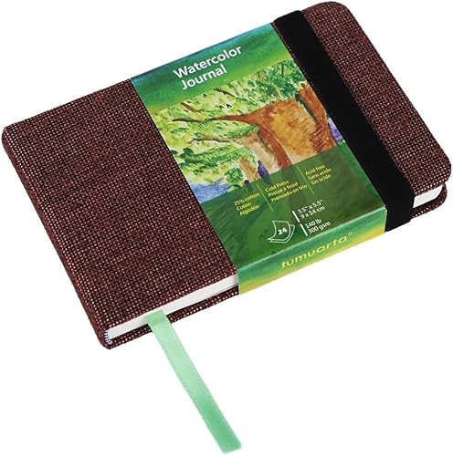 tumuarta Carnet de croquis carré aquarelle 63,5 kg, 300 g/m², papier coton, presse à froid, 48 pages, relié, bloc de papier aquarelle pour une utilisation comme journal de voyage et bloc-notes pour