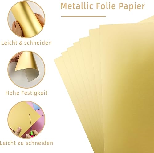 Lot de 30 feuilles de papier métallisé - Doré rose - Format A4 - 250 g/m² - 29,7 x 21 cm - Feuille de bricolage - Carton photo - Carton de bricolage