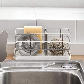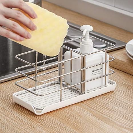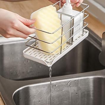 Timpou Porte-éponge en acier inoxydable 304, multifonctionnel pour évier de cuisine, organisateur d'évier, plateau égouttoir à vaisselle, porte-savon, panneau de suspension réglable