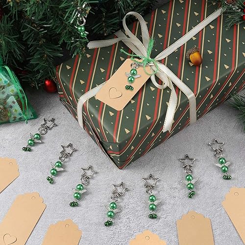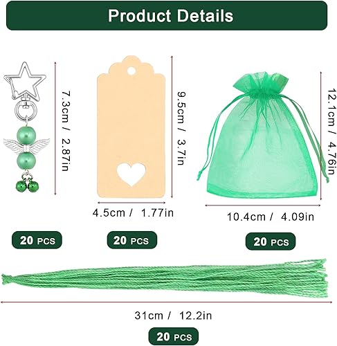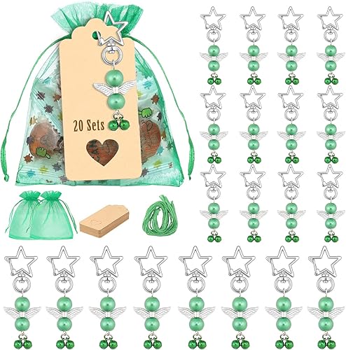 Porte-clés Ange en Perles pour Noël, Diealles Shine 20 Pièces Faveur de Mariage Ensemble, Pendentifs de Baptême de Mariage pour La Décoration d'arbre de Noël (Vert)