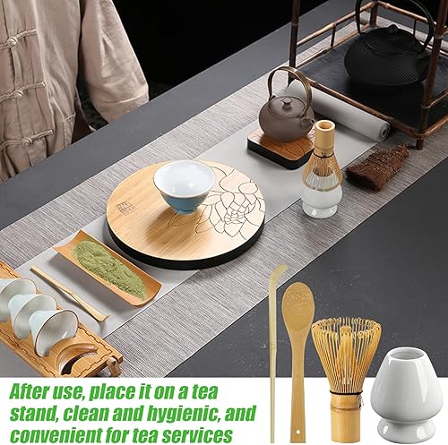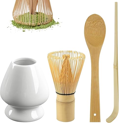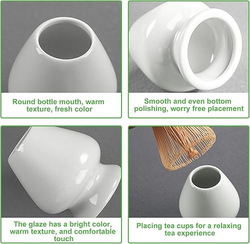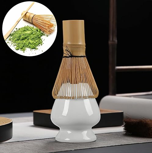 Lot de 4 fouets à matcha, fouet avec 2 cuillères à matcha, porte-balais pour matcha, whisky, matcha, thé, matcha, accessoires de matcha, porte-pinceaux à thé en céramique, cadeau pour la cérémonie du