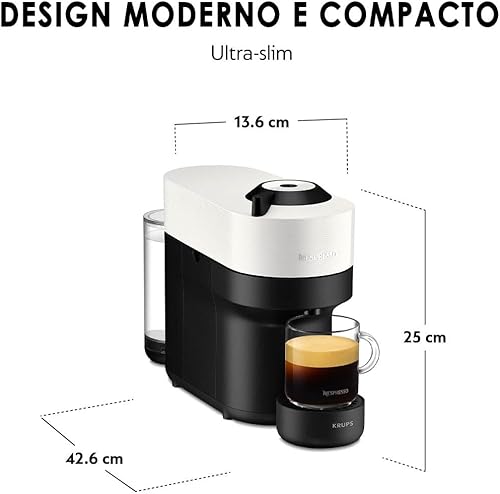 Krups Nespresso VERTUO Pop XN9201 Cafetière à capsules, machine à expresso, 4 tailles tasses, technologie Centrifusion, 35% plastique recyclé, Coconut White, Blanc