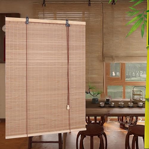 Sh000ad Store Enrouleur Bambou Naturel,Rideau en Bambou,Stores À Rouleaux Romains,Store Venitien Bois,Store Fenetre Occultant pour Intérieur,Extérieur,Balcon,Jardin,Largeur x Hauteur (140cm x 100cm)