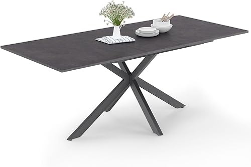 IDMarket - Table à Manger Extensible Rectangle Jaspe 6-10 Personnes Plateau Effet béton Pied araignée Gris Anthracite 160-200cm