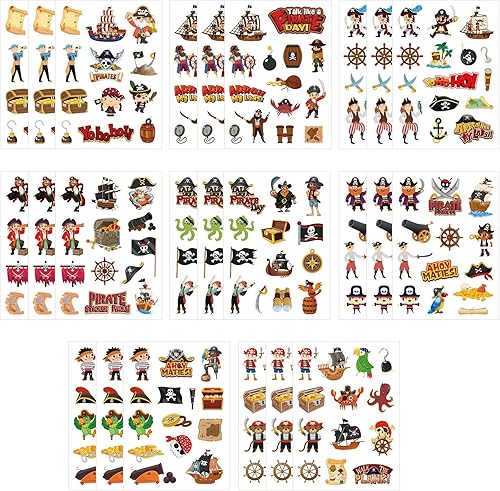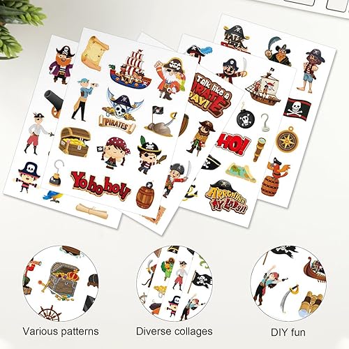 24 Feuilles D'autocollants Pirates Enfants,8 Styles de Stickers Pirate Enfants,Set de Stickers Pirates Enfant,Autocollants Pirate,pour Anniversaire D'enfant,Bricolage Cadeau