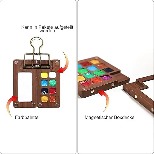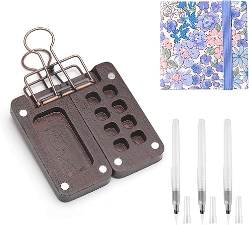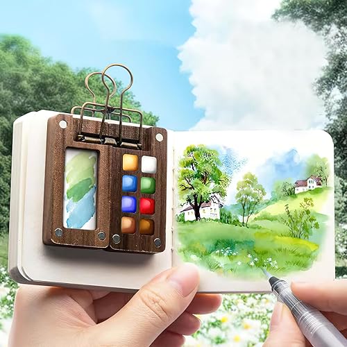 HENGBIRD Carnet de Croquis Portable pour Aquarelle et Gouache - Mini Palette de Peinture en Bois - Boîte avec Papier, Pinceaux, Stylos et 8 Grilles