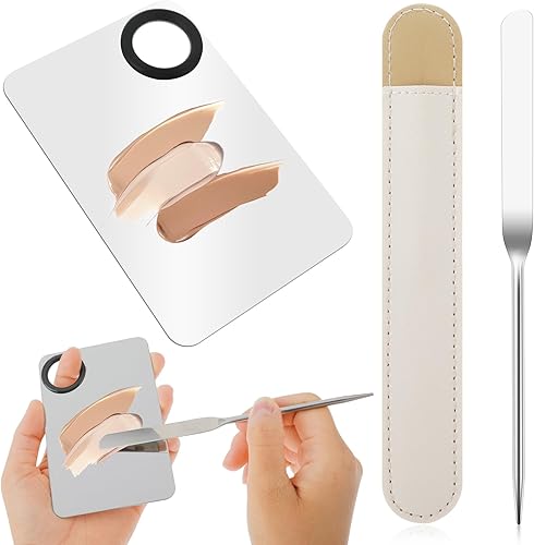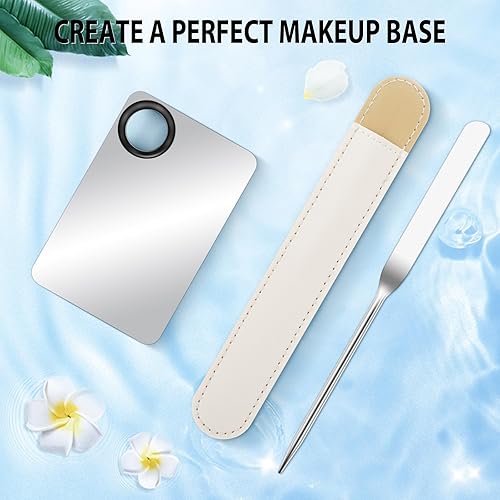 TIESOME Palette de Maquillage, Palette de Mélange Cosmétique avec Couvercle de Protection en Acier Inoxydable pour Spatule, Acrylique Palette de Couleurs, Makeup Mixing Palette