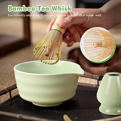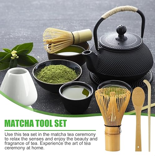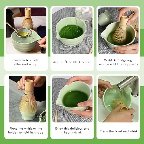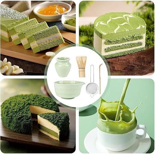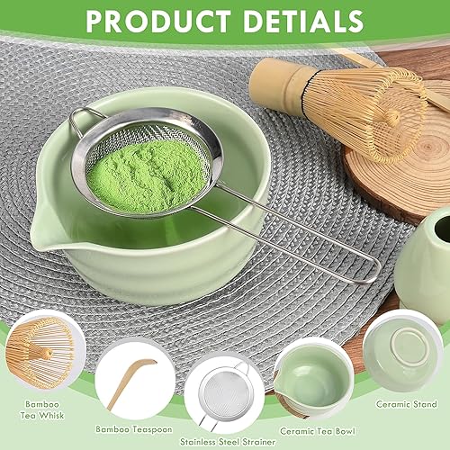 5 Pièces Matcha Kit, Ensemble à Matcha, Kit à Matcha, Avec Cuillere Matcha, Bol Matcha Bec Verseur, Fouet a Matcha, Support de Fouet à Matcha, Tamis à Matcha, pour La Cérémonie Du Thé Matcha (A)