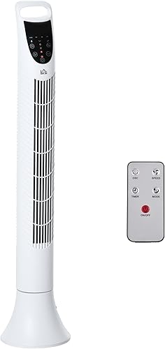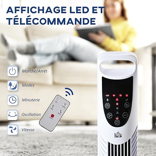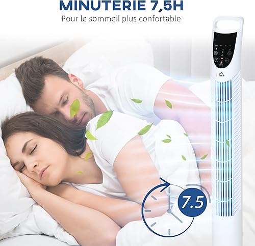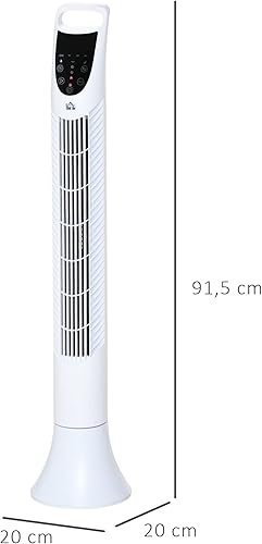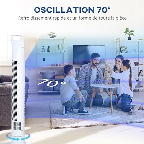 HOMCOM Ventilateur colonne silencieux 40W minuterie 3 Vitesses 3 Modes télécommande Oscillant à 70° panneau contrôle tactile ventilateur sur pied chambre hauteur 91,5 cm blanc