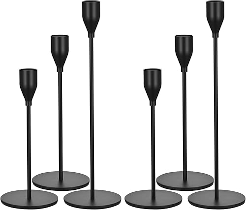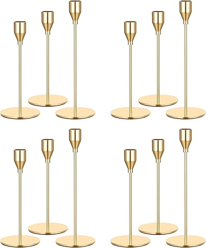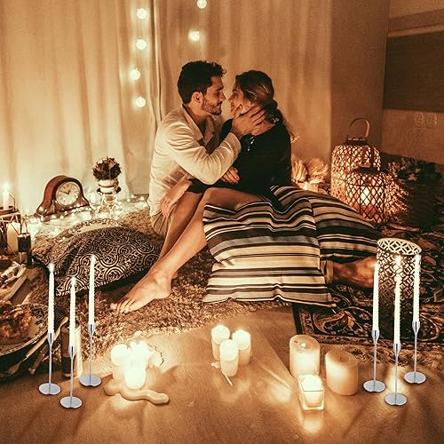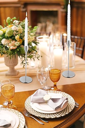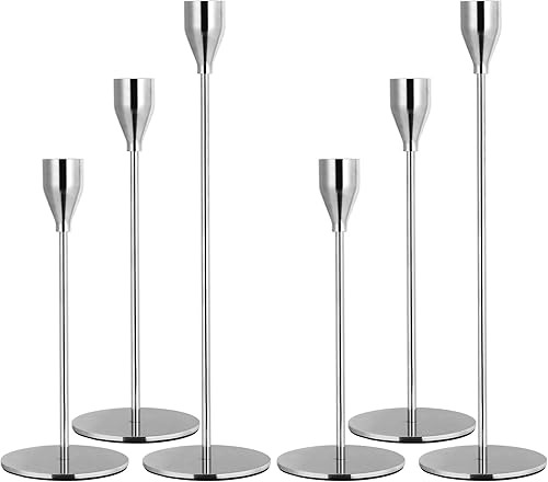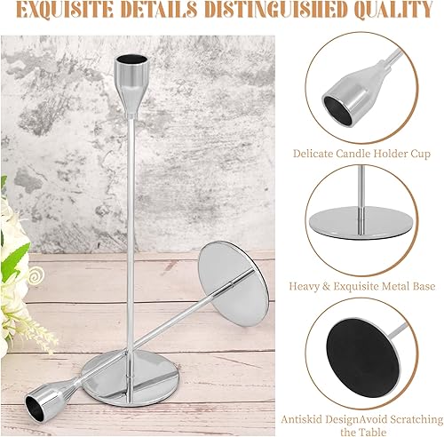 Lot de 12 bougeoirs Argent, bougeoirs piliers pour Bougies Coniques,Chandelier Conique pour Bougies 3/4 'd'épaisseur et Bougies LED, Pour Dîner aux Chandelles, Décoration de Banquet de Fête de Mariage