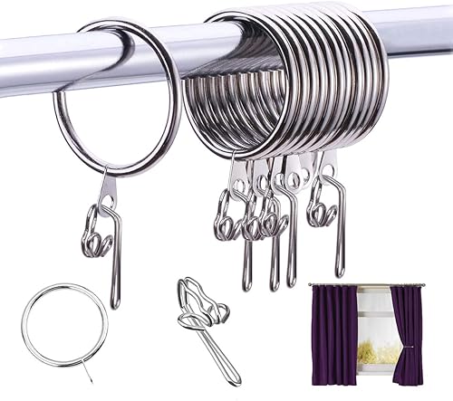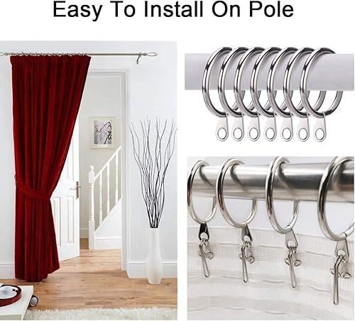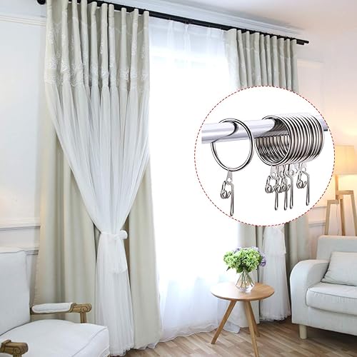 Heavenlife 30pcs Anneaux de Rideaux & 100pcs Crochets de Rideaux, Métal Anneaux Suspendus Diamètre Intérieur de 30mm pour Rideaux Drapé et Tringles, Argent