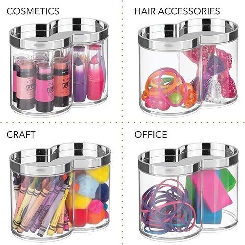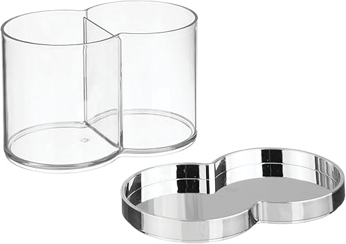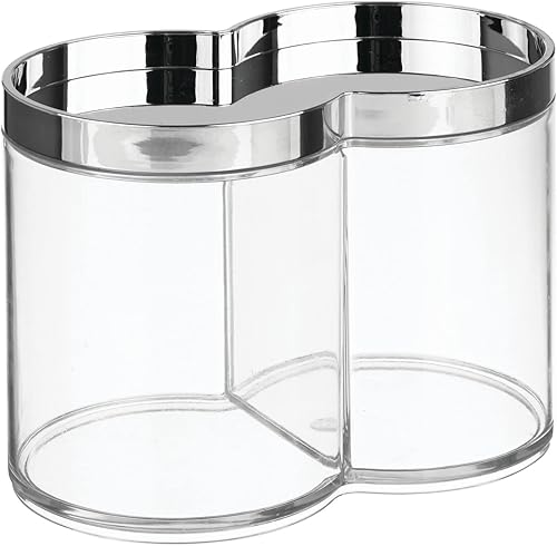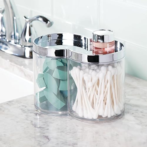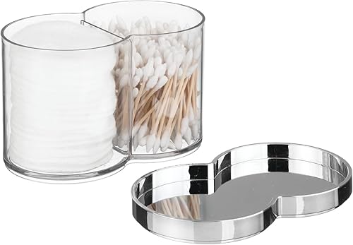 mDesign boite de rangement plastique – utilisable comme boite à coton et distributeur coton tige – empilable et avec couvercle pratique – transparent et argenté