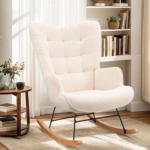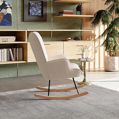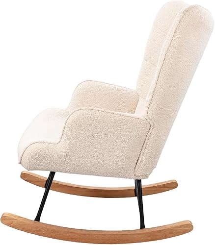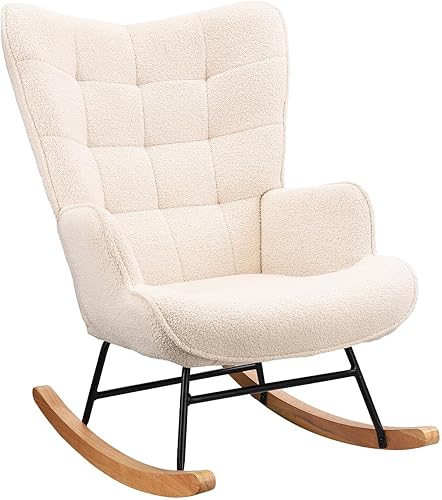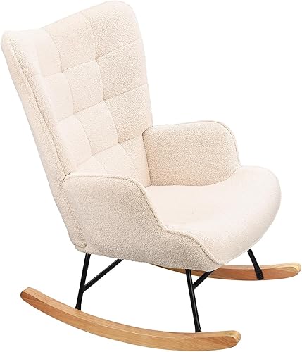 DIYHOM Fauteuil à bascule - Fauteuil d'allaitement rembourré - Pour salon, chambre à coucher - Charge maximale : 130 kg - Beige