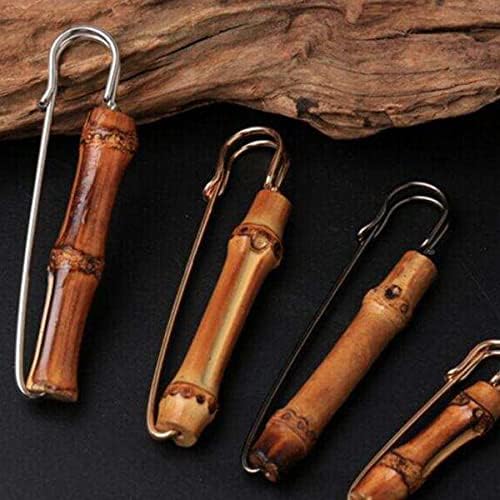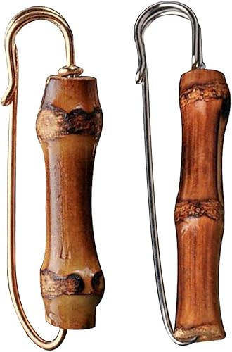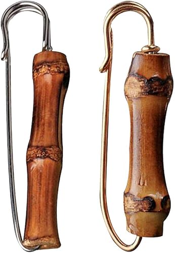 sharprepublic 2pcs Broche en Bois De Bambou Vintage Grandes épingles De Sûreté Broche pour Cardigan écharpe Pull Chapeau Décor