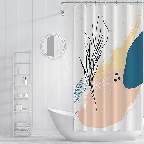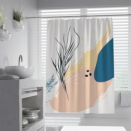 FEIPUHOME Art Minimalisme Nordique Rideaux de Douche Botanique Géométrique Coloré Ensembles de Rideaux de Bain avec Crochets en Plastique Tissu imperméable Lavable 120 x 200 cm