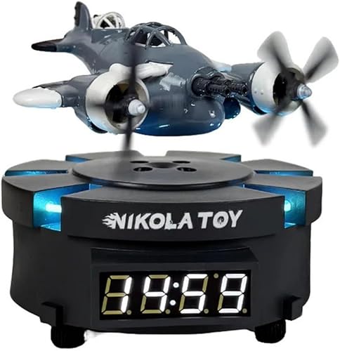 LED Horloge de Bureau Numérique à Lévitation Magnétique, Petit Avion Décor Biplan Maison Bureau Décor Bureau Tech Jouets