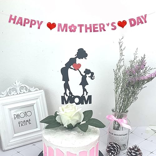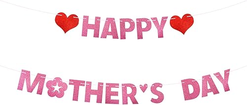 Bannière HAPPY MOTHER’S DAY Banderole Papier Bunting Banner Guirlande DIY Décoration Suspendue Drapeau pour la Fête des Mères