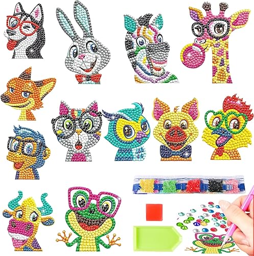 YOUYIKE 12 Pièces Petits Animaux Diamond Painting, 5D DIY Diamond Peinture Autocollants Enfant, Peinture Diamant Garçon, Mosaïque Autocollants pour Enfants Adultes DéButants