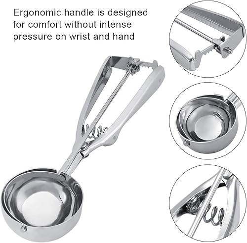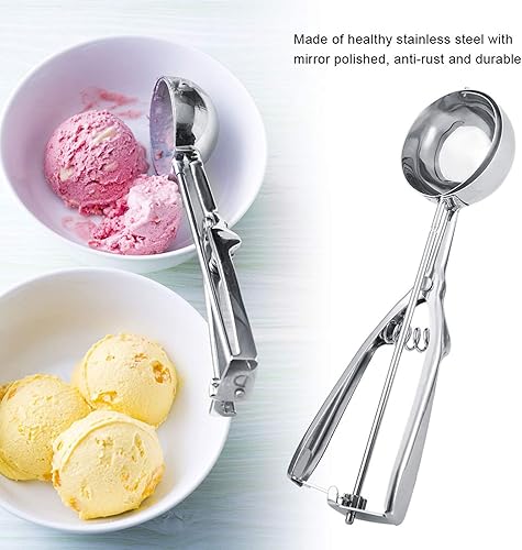 Cuillère à Crème Glacée, Cuillère à Biscuits Facile à Utiliser Cuillères à Glacée en Acier Inoxydable avec Déclencheur pour Melon Boulettes de Viande Pommes de Terre (6CM)