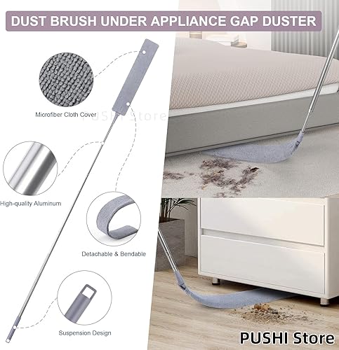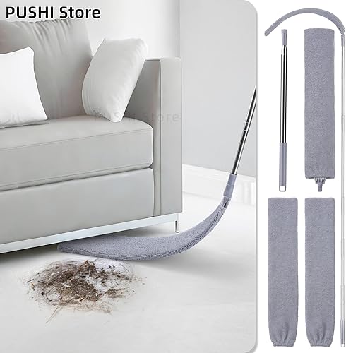 Nettoyeur de poussière rétractable, plumeau plat extensible jusqu'à et deux housses en microfibre, nettoyeur de poussière rétractable pour les fentes sous le canapé, les armoires, le lit, la poussière