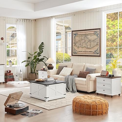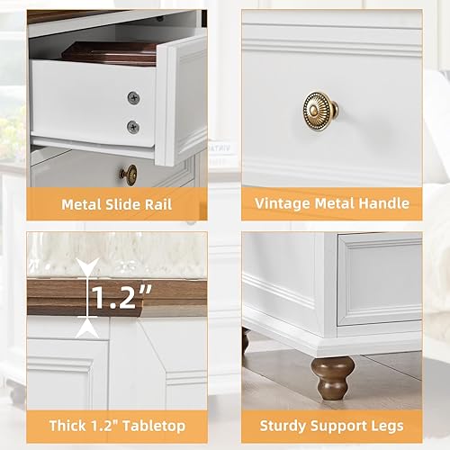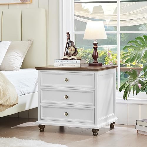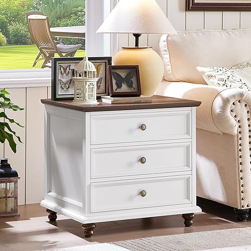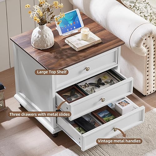 Table de chevet de 61 cm - Grande table d'appoint avec 3 tiroirs et poignée en métal - Commode en bois pour chambre à coucher - Commode blanche - Table de chevet pour salon