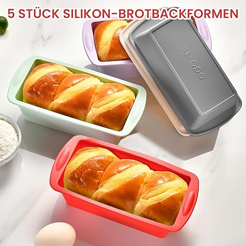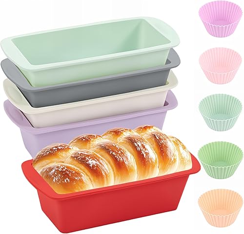 Bugucat Lot de 5 moules à pain en silicone anti-adhésif pour gâteaux et pain, passent au four et au lave-vaisselle, accessoires de qualité supérieure