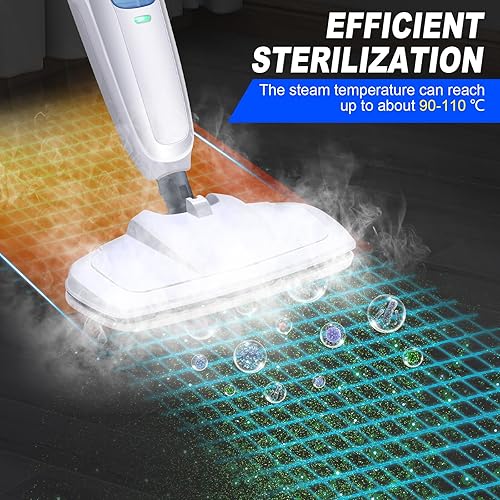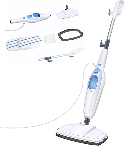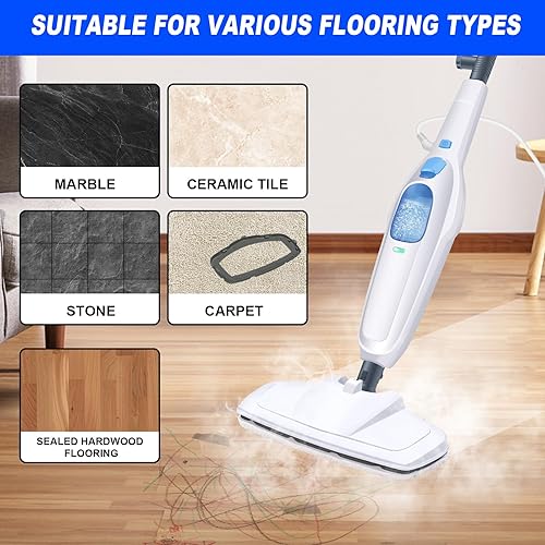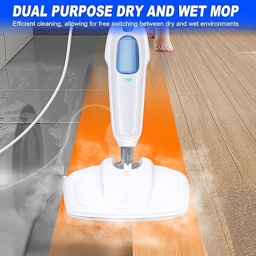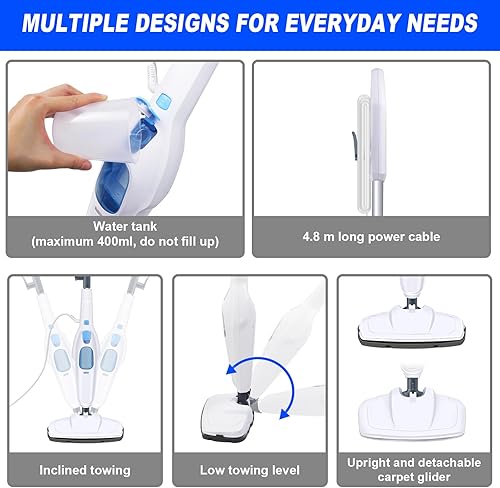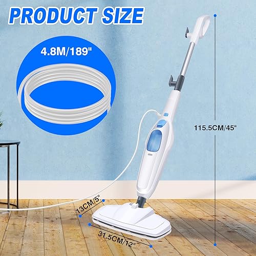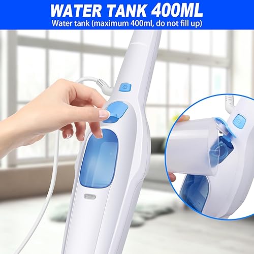 Nettoyeur vapeur 1500 W avec réservoir d'eau de 400 ml et câble de 4,8 m, tige en aluminium et poignée ABS, prêt à l'emploi en 20 secondes, nettoyeur vapeur pour sols durs, tapis, stratifiés